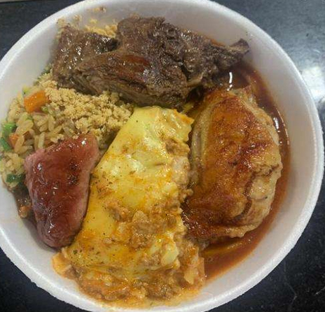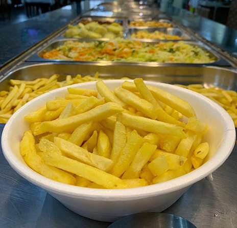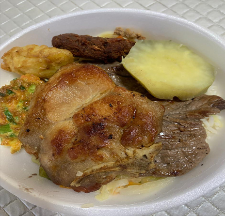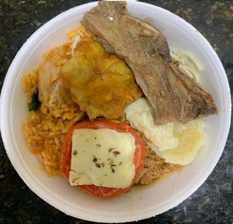 Arroz - Feijão - Massa - Legumes - Aipim - Lasanha de carne - Batata frita - Bolinho Batata Ralado - Churrasco (1 frango, 1 salsichão, 1 gado) - Salada