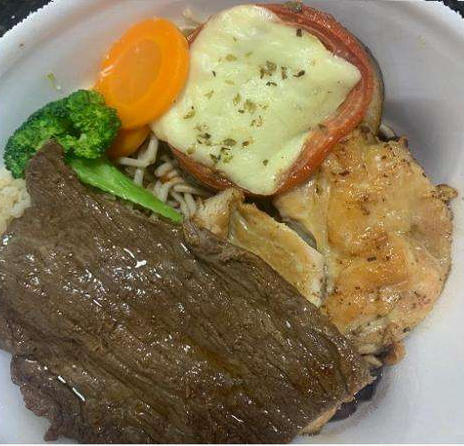 Arroz integral - Feijão - Massa Integral - Legumes - Bife Frango Grelhado - Bife Gado Grelhado - Salada